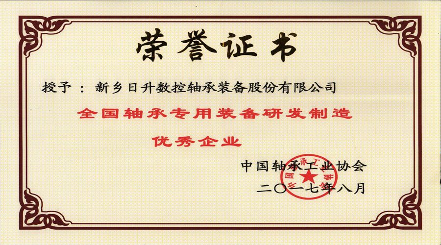 新鄉(xiāng)日升獲評(píng)“全國(guó)軸承專用裝備研發(fā)制造優(yōu)秀企業(yè)”.