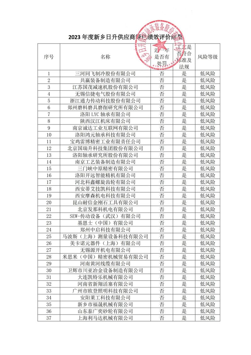 新鄉(xiāng)日升-低風(fēng)險供應(yīng)商公示-2023年度新鄉(xiāng)日升供應(yīng)商綠色績效評價結(jié)果