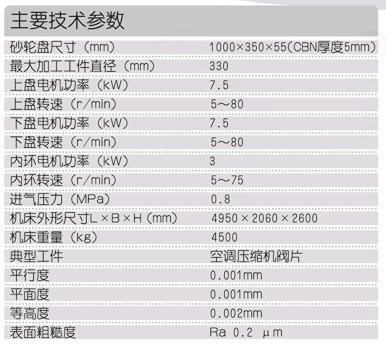 本機(jī)床采用立式布局,主機(jī)床身采用鑄鐵構(gòu)件,減少加工時(shí)振動(dòng),確保加工精度。上、下研磨盤(pán)及內(nèi)環(huán)均采用交流變頻無(wú)級(jí)調(diào)速,保證了研磨各種材料和各種形狀工件的工藝轉(zhuǎn)速。氣動(dòng)控制實(shí)現(xiàn)上研磨盤(pán)擺入、擺出和上升、下降動(dòng)作,便于操作。采用預(yù)壓、主壓、后壓三階段壓力控制,壓力值可任意調(diào)整并可自動(dòng)轉(zhuǎn)換。